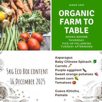 The 5kg Eco bag is the result of the request of quite a few of our members: people who want to make sure they pollute as little as possible when feeding their families with organic fruit and vegetables. Thus, 100% of this bag's content comes from "nearby" organic farms in Malaysia or Thailand. Everything is trucked in, nothing comes by plane.
